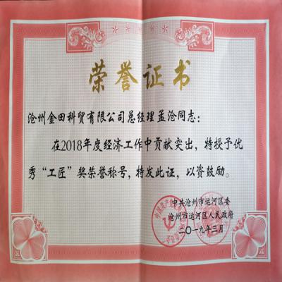 優(yōu)秀“工匠”獎(jiǎng)榮譽(yù)稱號(hào)